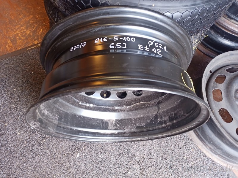 35.00€ 1 gab Volkswagen, Audi, Skoda, Seat tērauda diski Viskaļu iela 3 Diametrs / Ø: 16/57.1 ET: 42 Platums: 6.5 PCD: 5-100